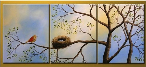 Art Hand Painted Modern Abstract Oil Painting On Canvas Wall Art Deco Home Decoration Bird Nest Tree Of Life 3 Pic/Set Stretched Ready To Hang